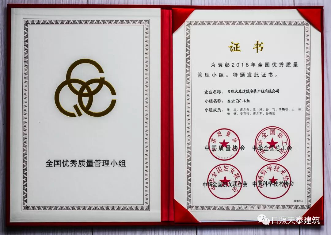 記者從中國(guó)質(zhì)量協(xié)會(huì)聯(lián)合全國(guó)總工會(huì)、婦女聯(lián)合會(huì)、中國(guó)科協(xié)召開的全國(guó)質(zhì)量管理小組活動(dòng)40周年大會(huì)中獲悉,興業(yè)·天泰建筑公司泰宏QC小組憑借《新型懸挑腳手架接火斗研制》成果獲得2018年度全國(guó)優(yōu)秀質(zhì)量管理小組稱號(hào)!