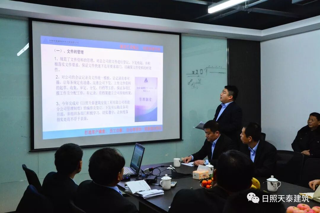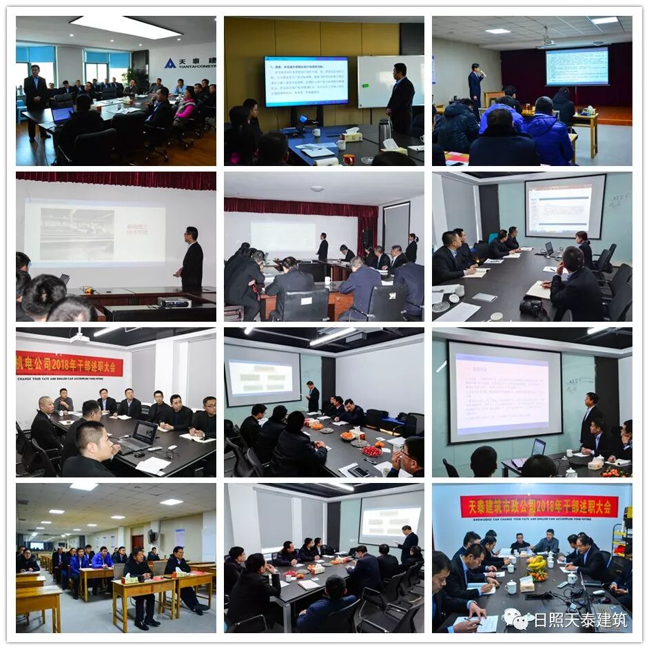 1月2日——6日,為期五天的天泰建筑2018年度述職交流會議圓滿落幕。本次述職交流創(chuàng)新會議形式,總公司、各土建、專業(yè)分公司分別組織召開,共組織14場述職會,197名中層干部(含)以上人員述職。