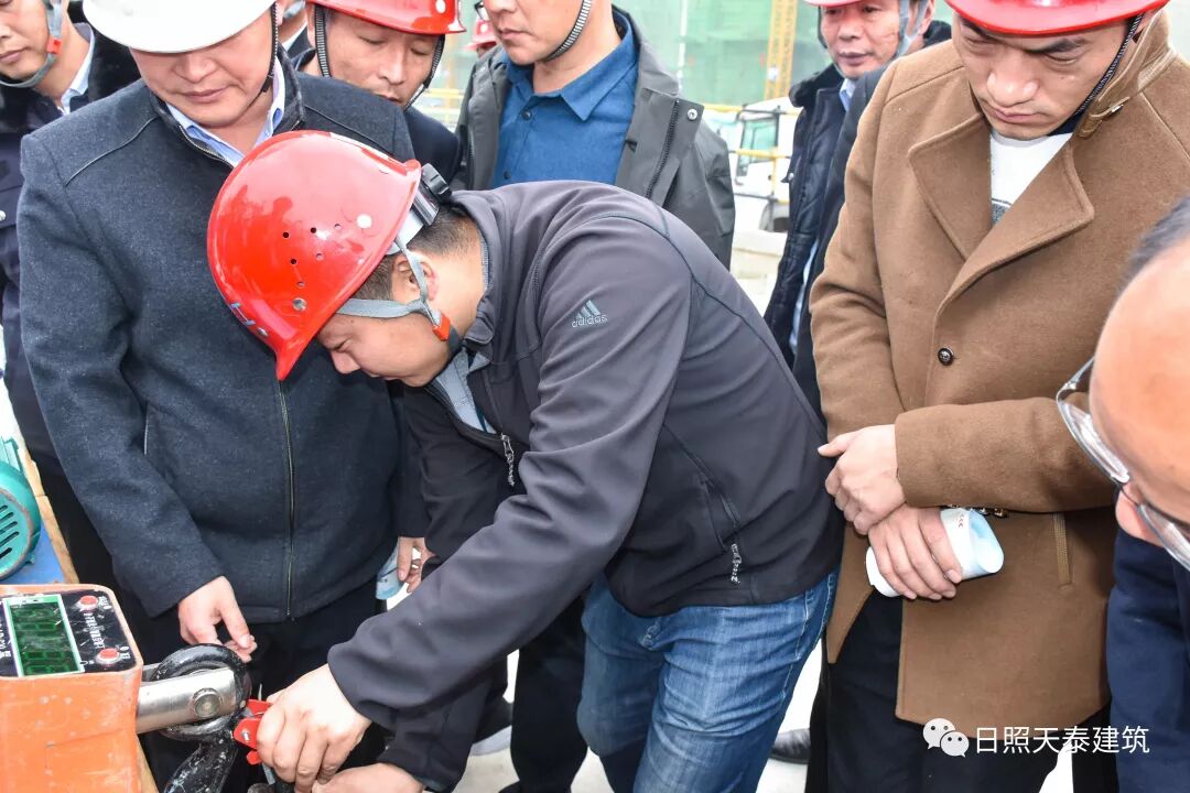 隨后觀摩來到成果展示區(qū),對近年來公司取得的國家、省、市級科技成果及專利(腳手架搭設輔助裝置、新型懸挑腳手架焊接接火斗、新型塔吊吊鉤保險裝置、外墻面磚嵌縫機)的演示進行觀摩。